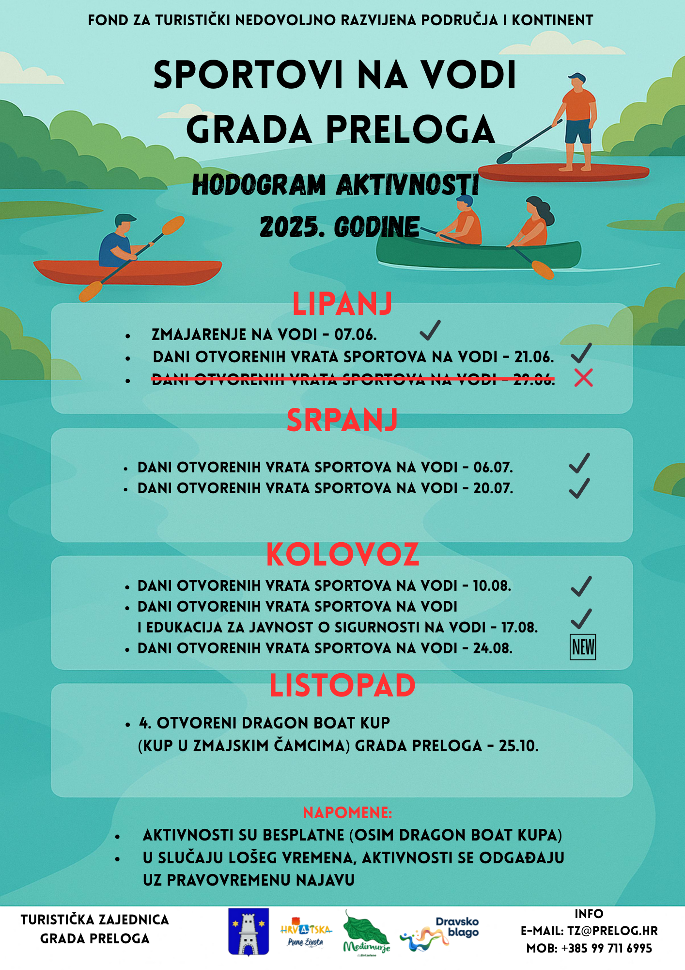 Projekt Sportovi na vodi Grada Preloga već nekoliko godina uspješno okuplja djecu, mlade i odrasle na druženjima, rekreativnim aktivnostima te edukacijama o sigurnosti na vodi. Kroz cijelo ljeto brojni su građani i gosti imali priliku okušati se u vožnji čamcima, kanuima i SUP-ovima te naučiti više o važnosti odgovornog i sigurnog boravka na vodi.