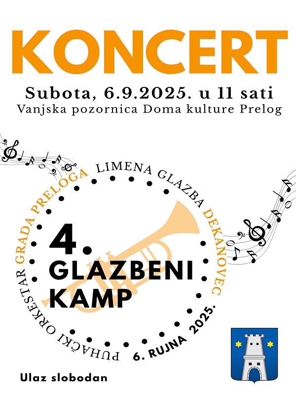 Četvrti Glazbeni kamp Puhačkog orkestra Grada Preloga završava besplatnim koncertom na otvorenom, koji će se održati u subotu, 6. rujna 2025., s početkom u 11:00 sati, ispred Doma kulture Grada Preloga.