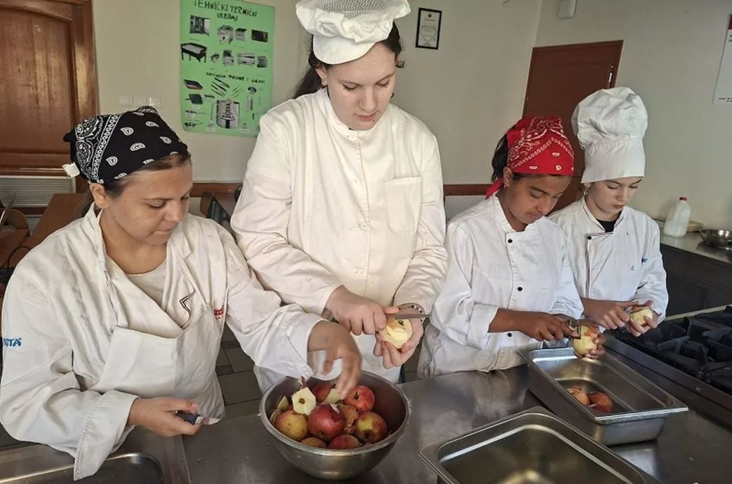 Na satu Kuharstva učenice su kroz zanimljivu prezentaciju upoznale važnost jabuke u svakodnevnoj prehrani, različite sorte te mogućnosti njezine primjene — od sokova i kompota, do octa i ukusnih slastica. Uslijedila je edukativna igra „Pogodi tko sam“, u kojoj su učenice povezivale fotografije jabuka s njihovim nazivima i osobinama, a zatim su svoje znanje pretočile u praksu.