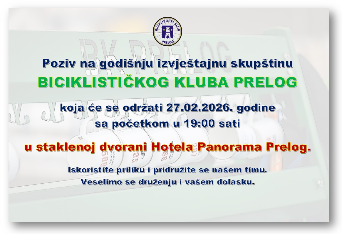 Biciklistički klub Prelog održat će godišnju izvještajnu skupštinu 27. veljače 2026. u Hotelu Panorama Prelog s početkom u 19 sati.