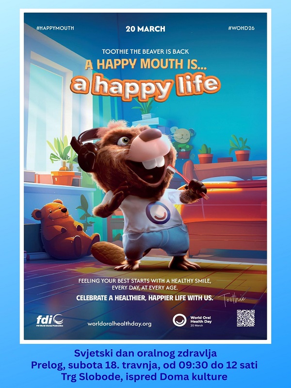 U Prelogu će se ovaj dan obilježiti u subotu, 18. travnja, od 9,30 do 12 sati, na Trgu Slobode, ispred Doma kulture. U programu vas očekuju razne aktivnosti za najmlađe, a posjetiteljima će na raspolaganju biti i stomatolozi koji će informirati građane o oralnoj higijeni.
