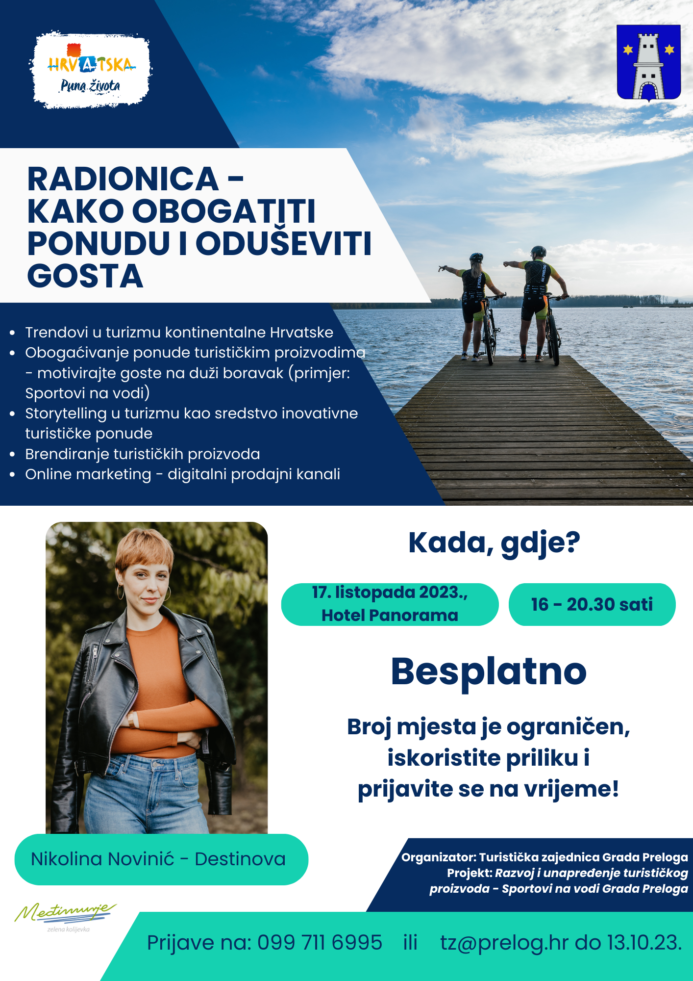 Turistička zajednica Grada Preloga poziva pružatelje smještaja, ugostitelje, djelatnike turističkih agencija i zainteresirane dionike u turizmu na zanimljivu radionicu o uvođenju turističkih proizvoda u svoju ponudu s namjerom privlačenja više gostiju i motiviranja tih gostiju na duži boravak u destinaciji
