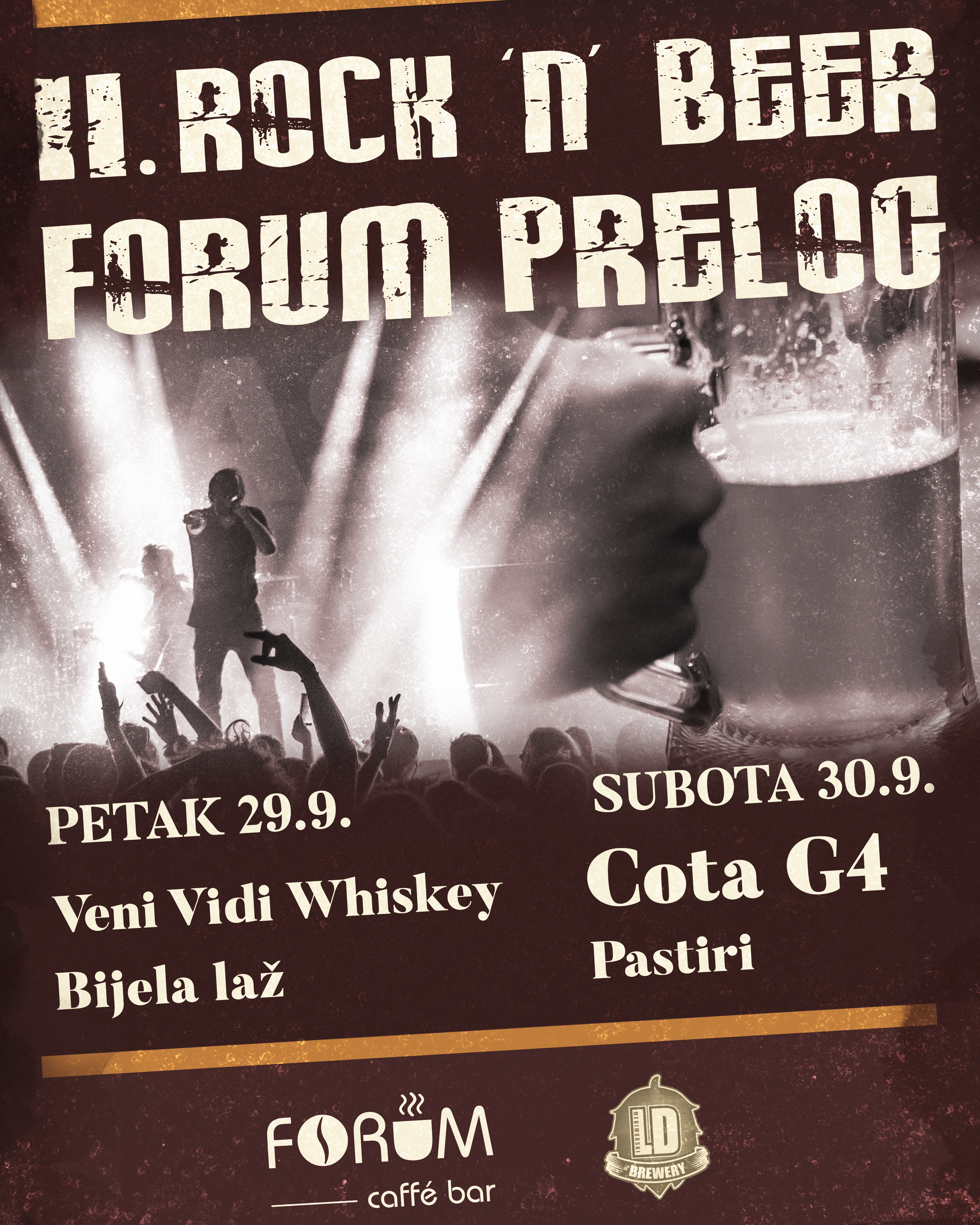 Nakon prošlogodišnjeg uspješno odrađenog Rock'n'Beer događaja, ove godine Caffe bar Forum u Prelogu donosi Vam čak dva dana druženja uz odličnu glazbu i najbolja međimurska piva