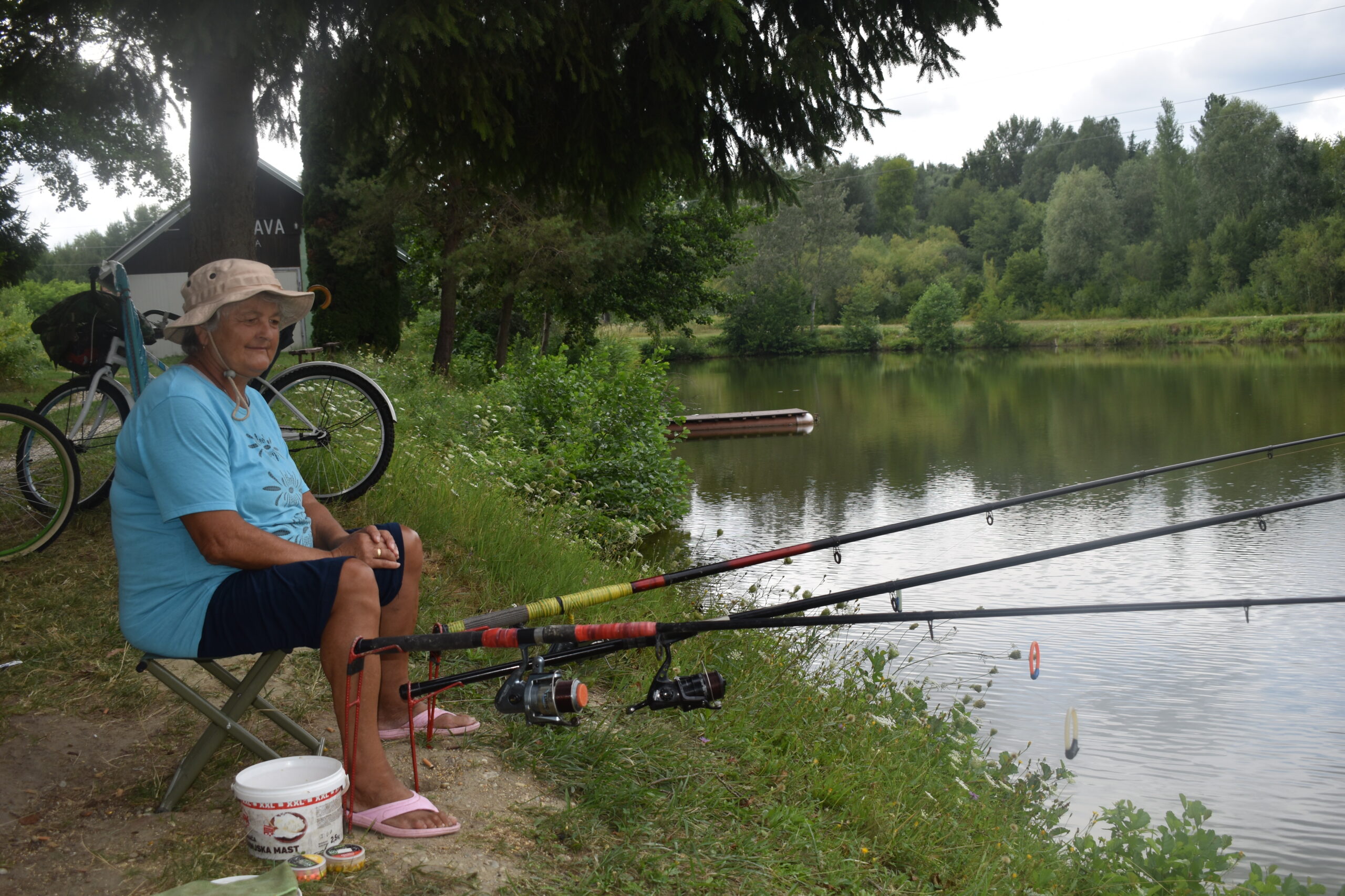 Uz tri štapa postavljena pokraj jezera u blizini Donjeg Mihaljevca sjedi Vesna Vučić i prati svaki, pa i najmanji trzaj