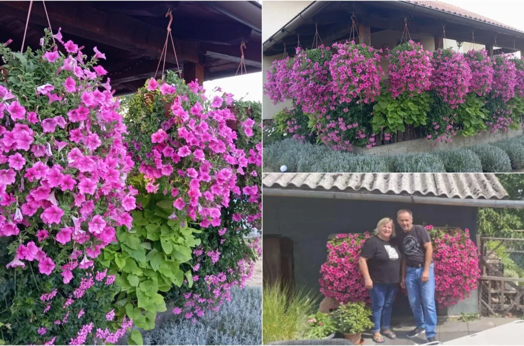 “Cvijeće zalijevam kišnicom, pošpricam sredstvom kada cvijeće ima uši, a jednom tjedno dodajem kristalon”, otkrila nam je Đurđica Novak ovu jednostavnu tajnu, a u skrbi za okućnicu pomaže joj i suprug Vlado.