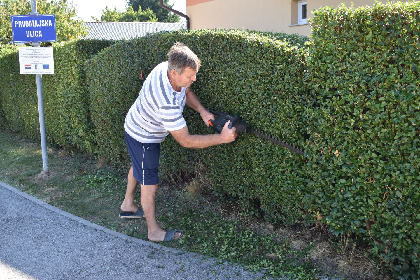Živica oko kuće, mora biti uredna, kategoričan je Strahoninčanin Željko Božanić na kojeg sam naišla pri rezidbi žive ograde u Prvomajskoj ulici