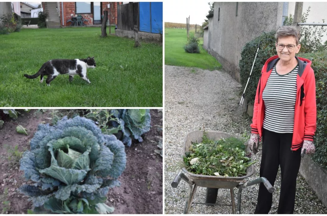 Danas uređuje špaler, svoj i susjedne kuće u kojoj nitko ne živi, pa živicu obuzdava sama. Sutra će se primiti kiseljenja paprika za zimnicu. Već je to trebala ranije početi, ali u posljednje vrijeme ne ide nego pomalem, kaže dok mi pokazuje vrt. Ima tu paprike, rajčice, cikle, zelja, krastavaca, špinata i nekoliko divovskih glavica kelja. Sve povrće složno zajedno raste, osim mrkve koja iz nekog razloga ne uspijeva kako bi trebala.