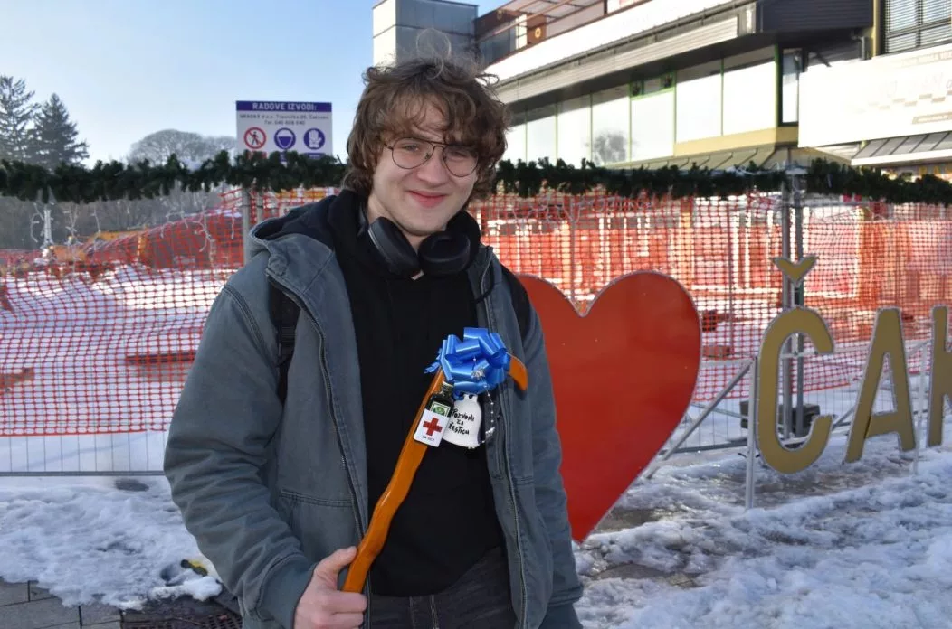 Leon Šarić, učenik Gimnazije Josipa Slavenskog u Čakovcu, privukao je pažnju prolaznika dok smo ga zatekli u samom centru grada, netom nakon povratka iz kupovine.