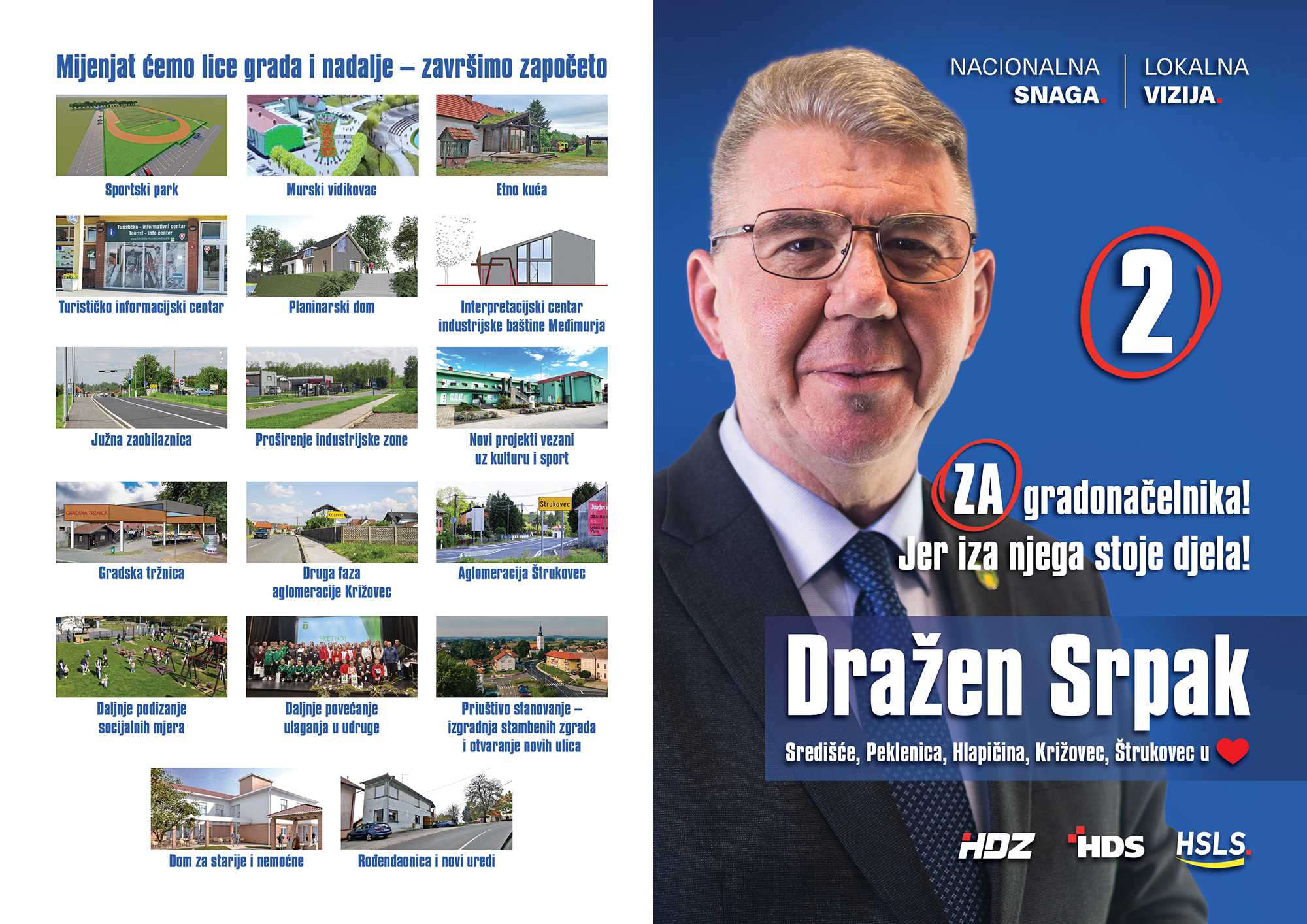 Razvoj Murskog Središća pokrenut prije nekoliko godina nastavlja se kroz novu priliku za glasovanje. U nedjelju izađite na izbore i podržite Dražena Srpaka – kandidata za gradonačelnika pod brojem 2 i listu HDZ‑HDS‑HSLS pod brojem 1.