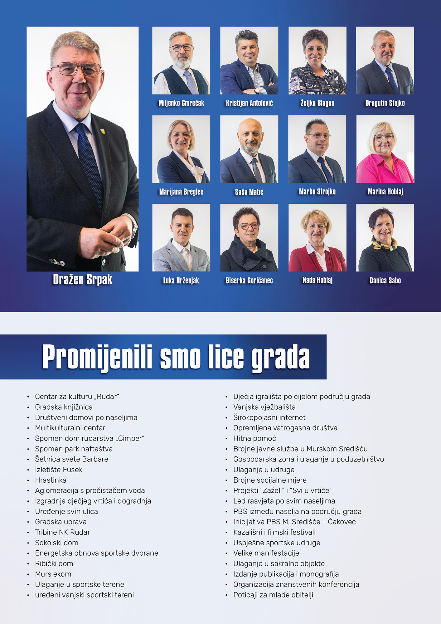Dražen Srpak i kandidacijska lista HDZ‑HDS‑HSLS otvoreno ističu: “S nama će se politika Murskog Središća i dalje voditi iz Murskog Središća. Vaš grad zaslužuje da sve odluke budu donesene lokalno, uz vašu stalnu uključenost.” Podržite listu broj 1 i birajte siguran put prema još uspješnijem Murskom Središću!