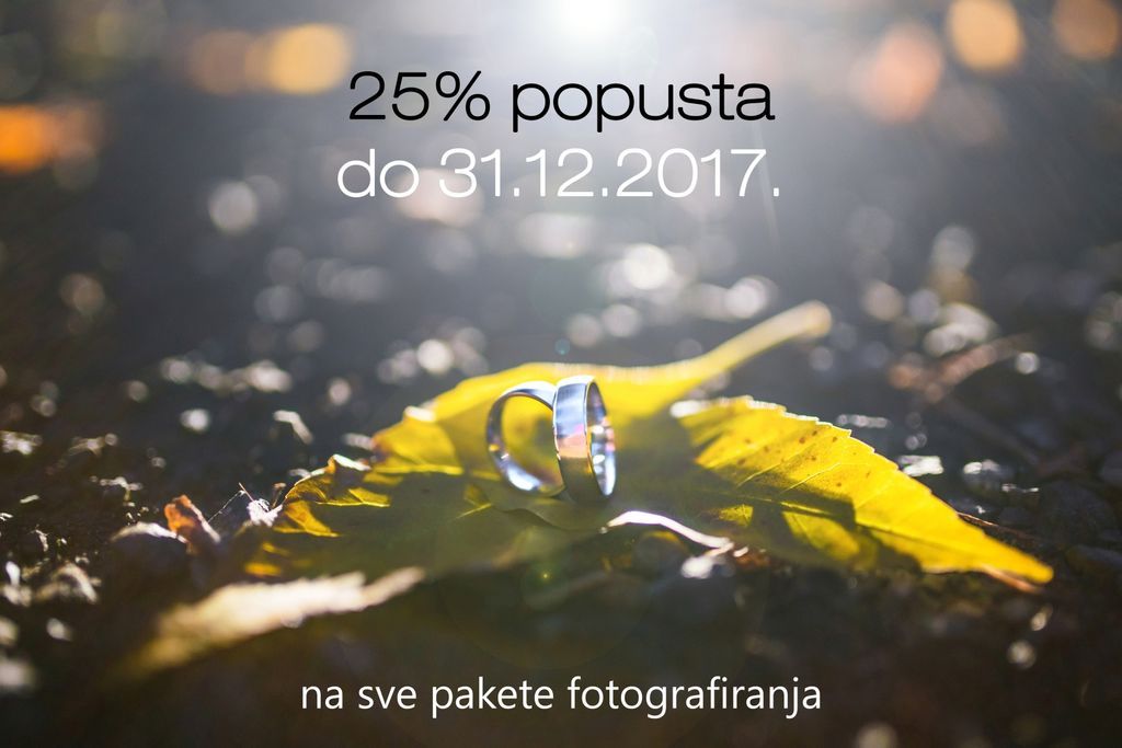 Povodom nadolazećih blagdana ekipa Fotokreacije daruje buduće mladence s 25% popusta na sve vjenčane pakete fotografiranje!