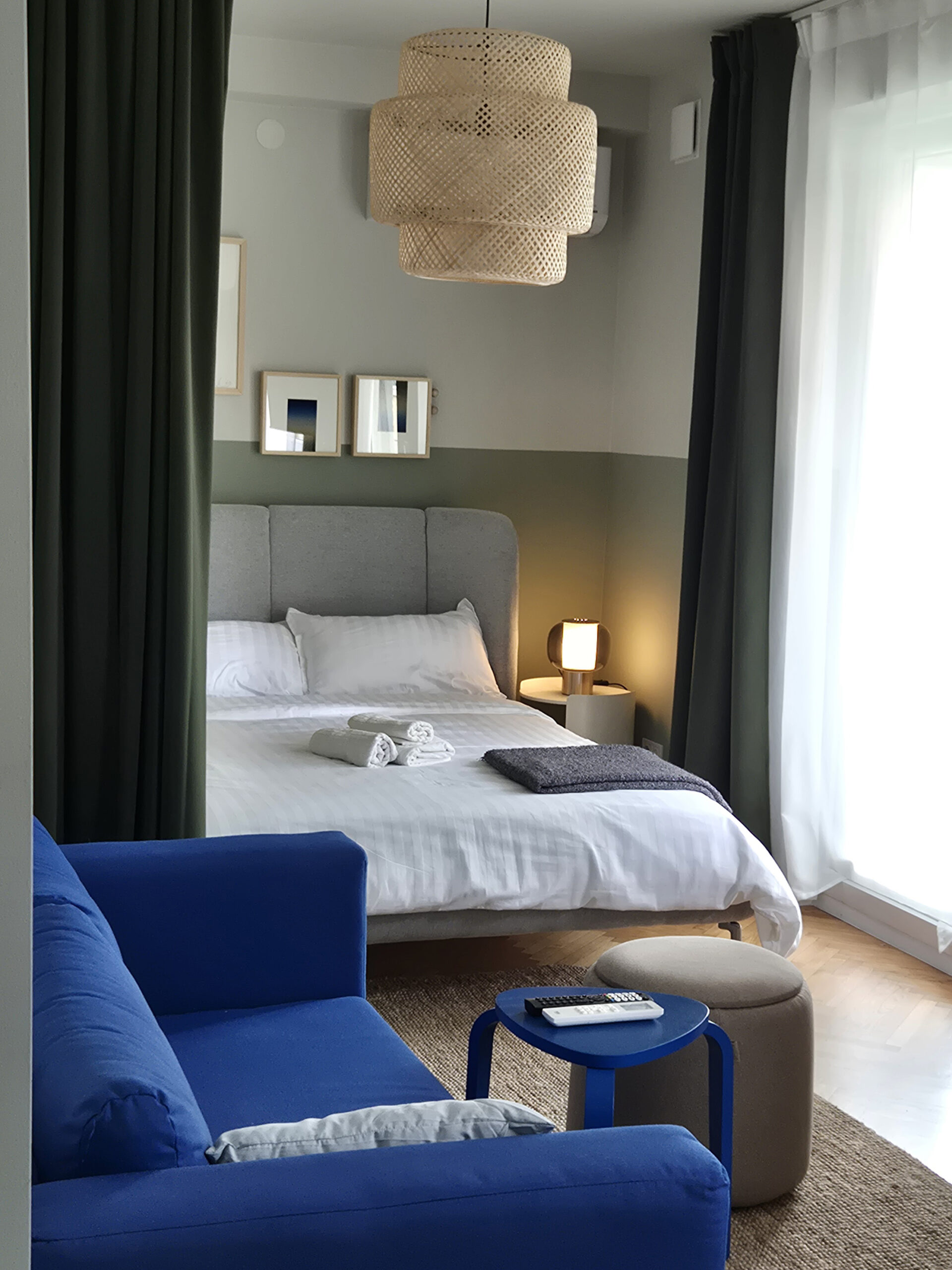 U njihovom novom domu posebnu toplinu prostoru daju pažljivo odabrani detalji, među kojima se ističu slike na zidovima – apstraktni gradijenti koje je, posebno za ovaj interijer, oslikala umjetnica i dizajnerica interijera Andrea Milo. Njezin potpis vidljiv je u svakom segmentu prostora – od promišljenog uređenja do suptilnih umjetničkih intervencija koje prostoru daju mekoću, sklad i osjećaj mira. Više o Andreinom radu možete pronaći na njezinoj instagram stranici @andrea.milo.art