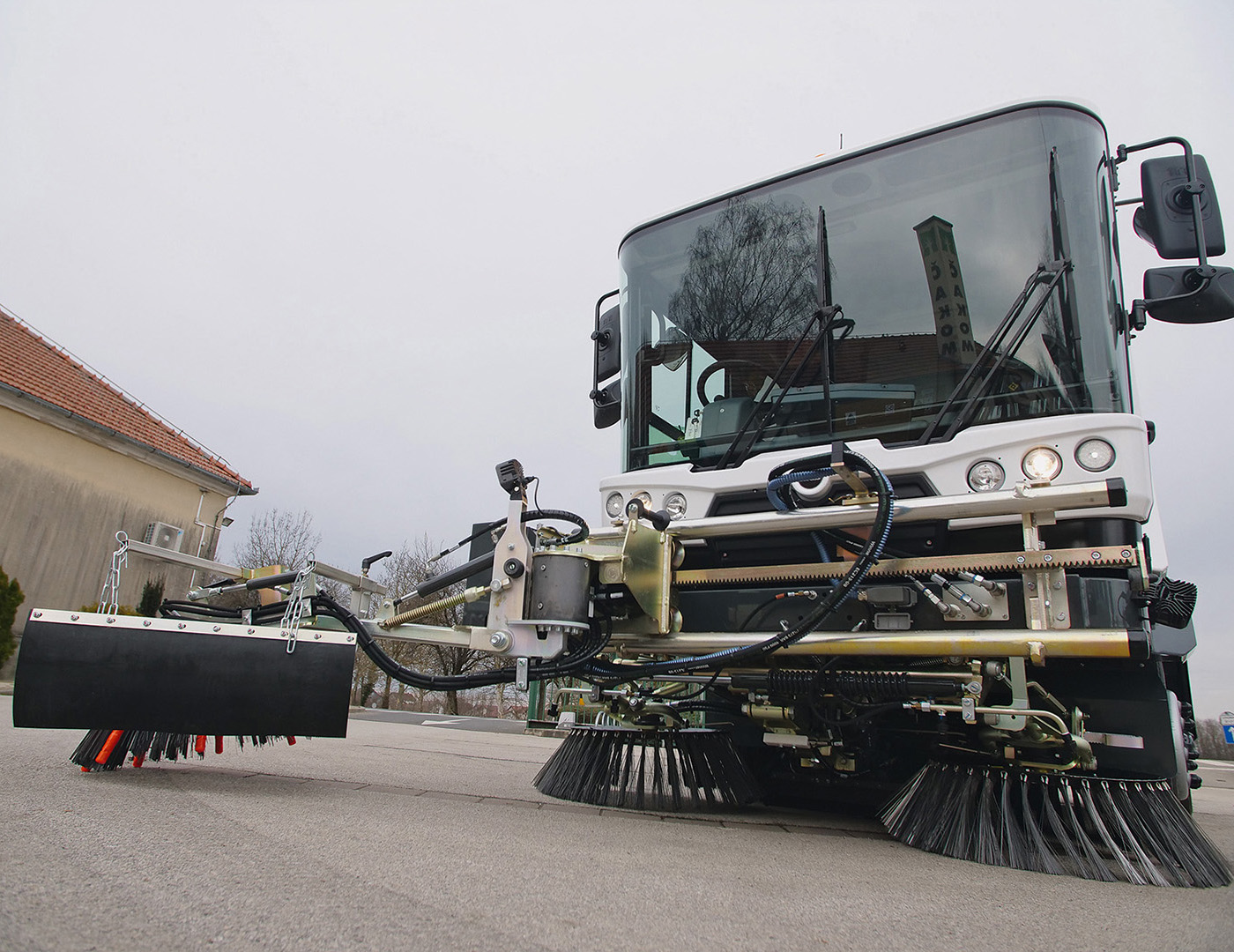 Nova cestovna čistilica raspolaže spremnikom za otpad kapaciteta 5 kubičnih metara, a jedna od njezinih ključnih odlika je sustav reciklaže prljave vode. Ovaj sustav omogućuje ponovnu upotrebu vode tijekom rada, čime se znatno produžuje autonomija stroja, smanjuje potreba za čestim nadopunjavanjem spremnika te povećava ukupna učinkovitost i produktivnost tijekom čitavog radnog dana. Čistilica je opremljena s dvije prednje standardne rotirajuće četke te dodatnom, trećom četkom s mogućnošću podešavanja kuta rada, što je čini iznimno korisnom za čišćenje teško dostupnih mjesta i pogodnom za uklanjanje korova uz cestovne rubnjake.