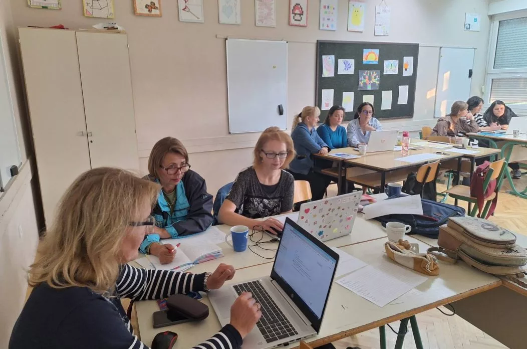 Prva radionica bila je posvećena primjeni umjetne inteligencije u nastavi, s naglaskom na praktične alate kao što su Suno, Edutopia, Ideogram i Classroomscreen. Učitelji su ih isprobali u praksi, razmijenili ideje i razgovarali o mogućnostima koje AI donosi obrazovanju.