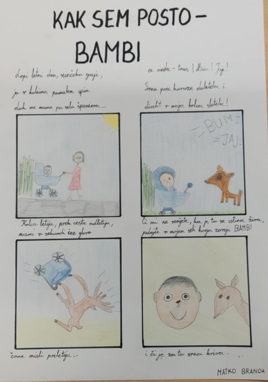 Osim literarnog uspjeha, Matko je briljirao i u likovnom dijelu natječaja – njegova ilustracija pjesme „Kak sem posto Bambi“ uvrštena je u Zbirku likovnih radova te izložena na izložbi u Muzeju Sv. Ivan Zelina.