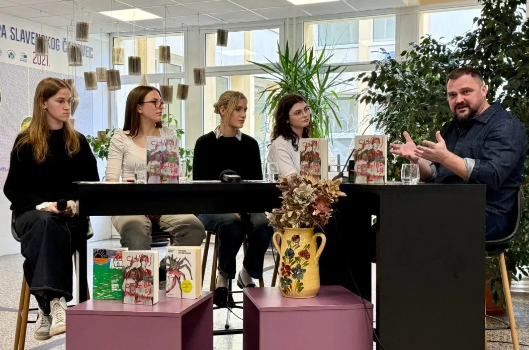 Razgovor su vodile maturantice Tena Šegović, Hana Rihtarec, Korana Drakulić i Eva Bogomolec, koje su postavljale promišljena, izravna i zrela pitanja temeljena na prethodnim raspravama i satima Hrvatskog jezika.