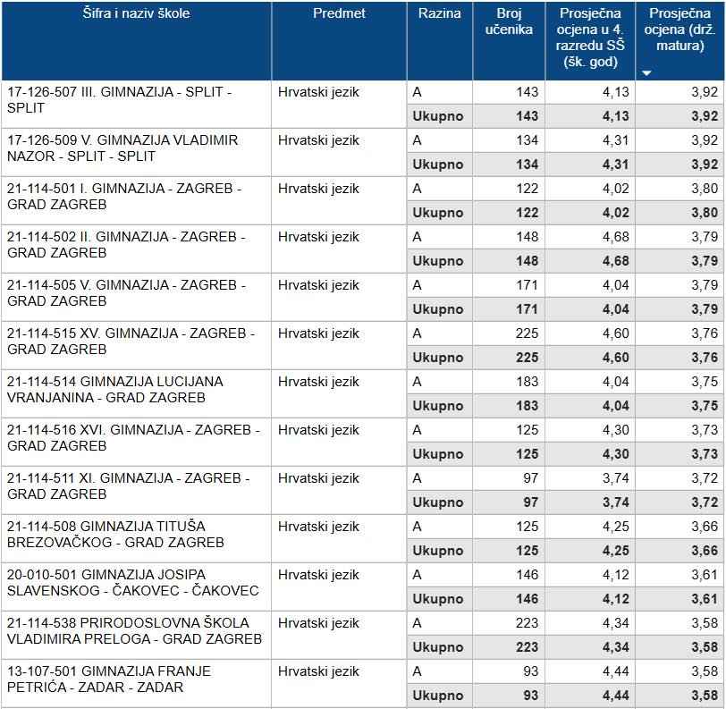 Gimnazija Josipa Slavenskog Čakovec uvrstila se među 13 najboljih škola u Hrvatskoj prema rezultatima državne mature iz Hrvatskoga jezika, pokazuju podaci Ministarstva znanosti