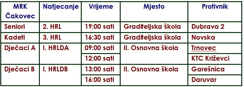 Nadamo se da će kadeti i dalje nastaviti sa zalaganjem i timskom igrom te da će se ovog puta upisati vrijednu pobjedu. Utakmica se igra u subotu, 10. ožujka u dvorani Graditeljske škole u Čakovcu s početkom u 16:30 sati.