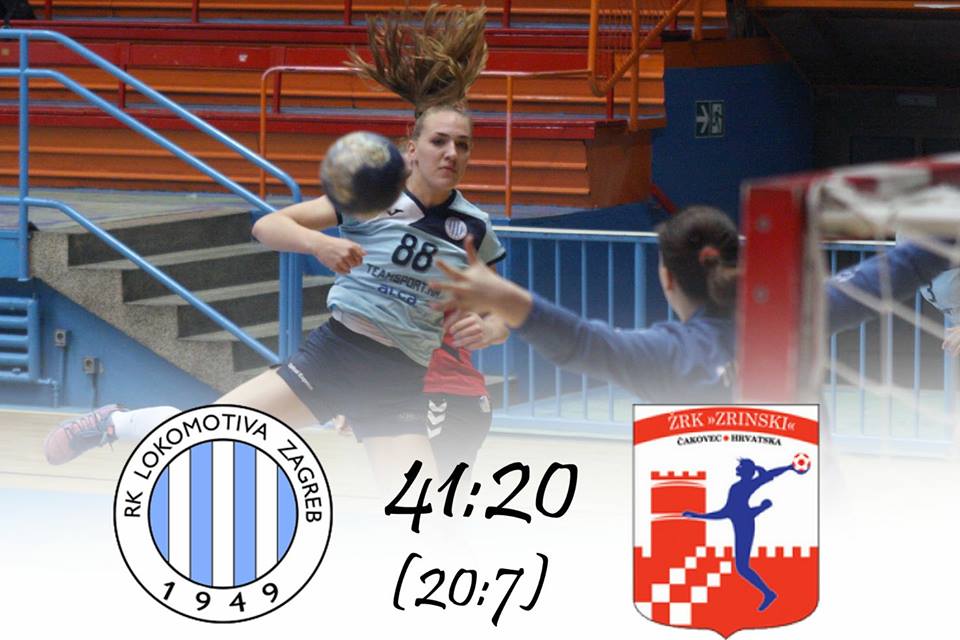 Rukometašice Lokomotive će u četvrtfinalu Kupa Hrvatske odmjerile snage sa ŽRK Zrinski iz Čakovca. Utakmica je igrana u dvorani 2 Doma sportova i domaćin je uvjerljivo slavio 41:20. Poluvrijeme je bilo 20:7.
