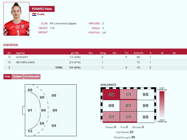 Nakon pobjede nad Mađarskom 24:22 Hrvatska ženska rukometna reprezentacija na Europskom prvenstvu u Danskoj u skupini C igrala je sa svjetskim prvakinjama Nizozemskom i pobijedila je 27:25!!! Susret je odlično počeo za našu rukometašicu iz Strahoninca Paulu Posavec koja je postignula golove za 1:1 i 3:1.