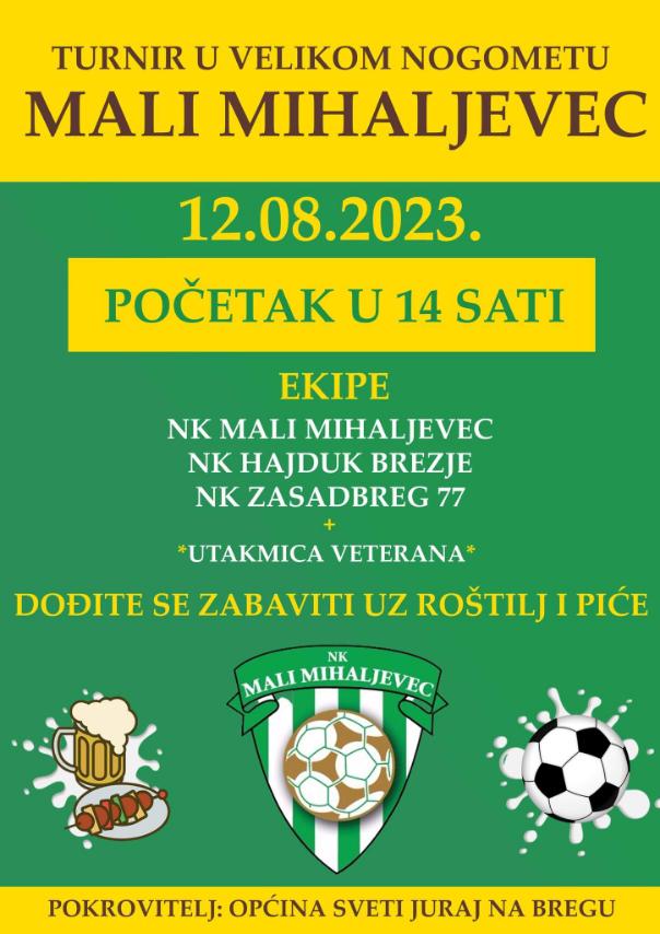 Ove subote u Malom Mihaljevcu, s početkom u 15 sati očekuje vas turnir u velikom nogometu