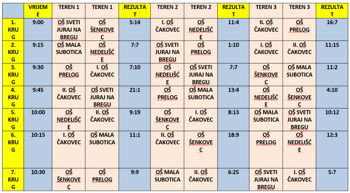 utakmica, a rezultati su bili sljedeći: