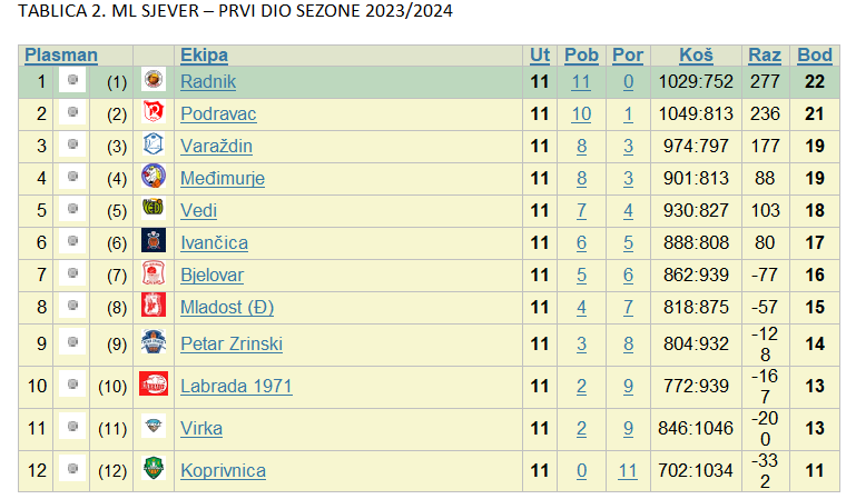 pozicije na tablici, jer vodeći Radnik i Podravac, kao i Vedi