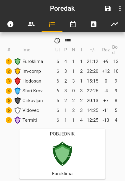 Ovogodišnji pobjednik jubilarne 15. po redu tradicionalne veteranske malonogometne lige Antun Balent «Toča» je ekipa Euroklima. Oni su kroz šest odigranih utakmica ostvarili četiri pobjede, jedan neriješen rezultat uz jedan poraz postigavši 21, a primivši 12 pogodaka što im je donijelo 13 osvojenih bodova.