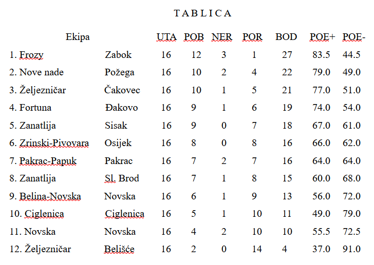 I u takvom sastavu pobijedili su Ciglenicu iz istoimenog mjesta u Moslavini sa 7:1, uz ravno 200 čunjeva razlike, a uz to srušili jedan od boljih momčadskih rezultata ove sezone.