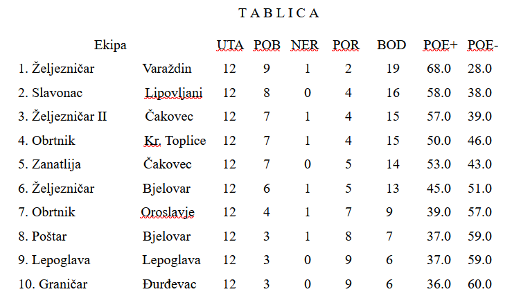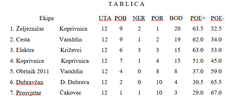 Kvalitetnu utakmicu su odigrali Željezničar 2 i Lepoglava, a posebno je ugodno iznenadila gostujuća momčad, što je, uz nešto slabiju igru pojedinaca u Željezničaru 2, donijelo 2 boda gostima.