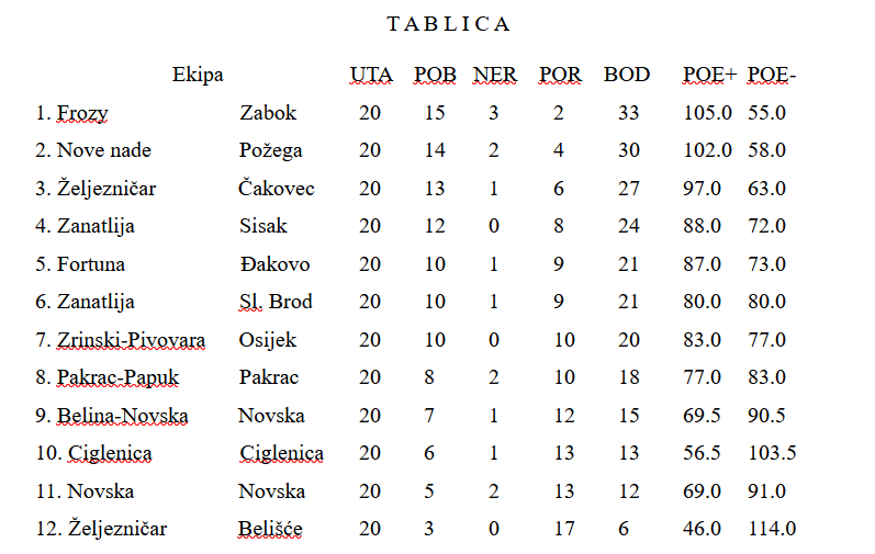 Od 1:1 i plus 1 čunj nakon prvog bloka, do ponora 1:3 i 112 čunjeva minusa u drugom bloku i na kraju do pobjede 5:3, uz 62 čunja plusa.