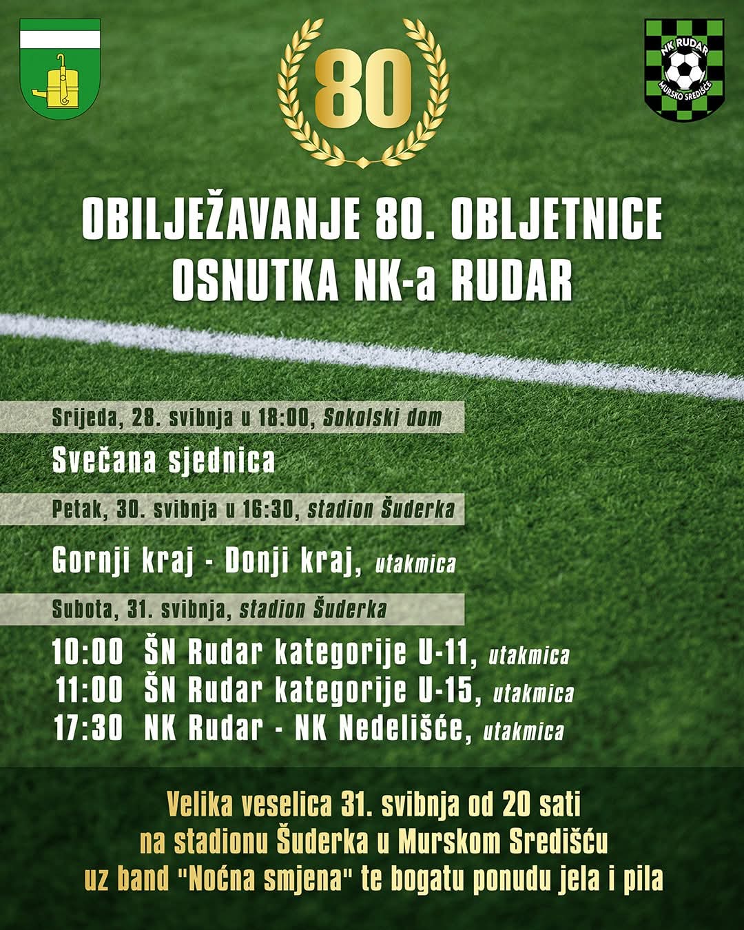 Mursko Središće ovih će dana biti u znaku nogometa, zajedništva i slavlja – NK Rudar obilježava velikih 80 godina postojanja, a u sklopu proslave pripremljen je program na stadionu Šuderka.