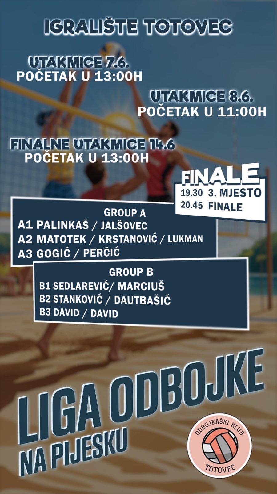 “Počinjemo u 15:30 sati s preostalim utakmicama skupine koje su bile odgođene prošle nedjelje zbog kiše, a nakon toga krećemo s utakmicama polufinala i finala. Ovim putem pozivamo sve ljubitelje vrhunske odbojke, dobrog društva i hladnog pića da dođu u Totovec i podrže dečke, pa nek’ najbolji pobijede”.