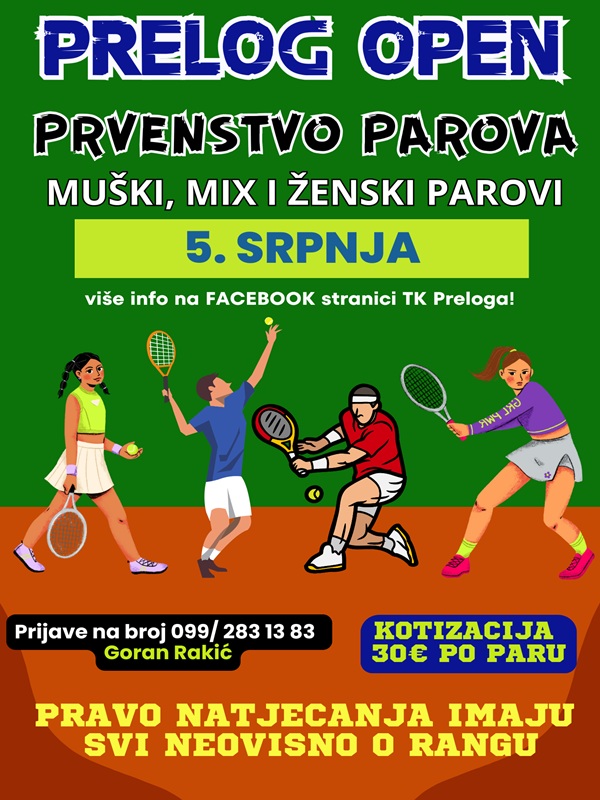 Teniski klub Prelog organizira Prelog Open 5. srpnja – natjecanje u muškim, ženskim i mješovitim parovima uz ručak, glazbu i nagrade.