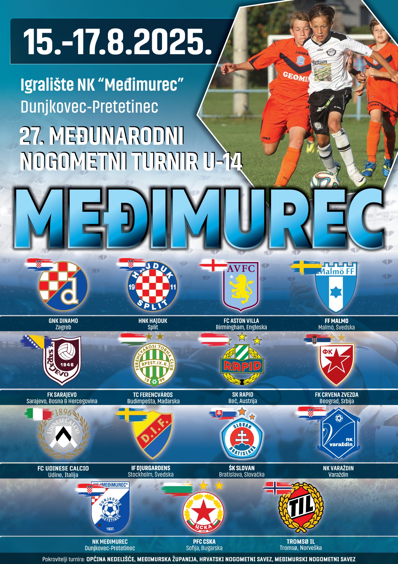 Međimurje od 15. do 17. kolovoza postaje središte europskog nogometa – na turniru U-14 snage će odmjeriti 16 klubova iz 12 zemalja, uključujući Aston Villu, Dinamo, Hajduk i Crvenu zvezdu