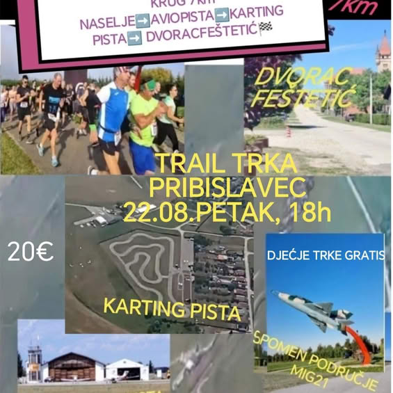 Možda zvuči nevjerojatno, ali moguće je: trčati travnatom pistom dok uz vas stoje avioni, zatim iskušati kilometar zavojite karting staze, a onda nastaviti glavnom cestom sve do dvorca grofa Feštetića. Nakon sedam kilometara vraćate se na isto mjesto s kojeg ste krenuli – jer start je ujedno i cilj.