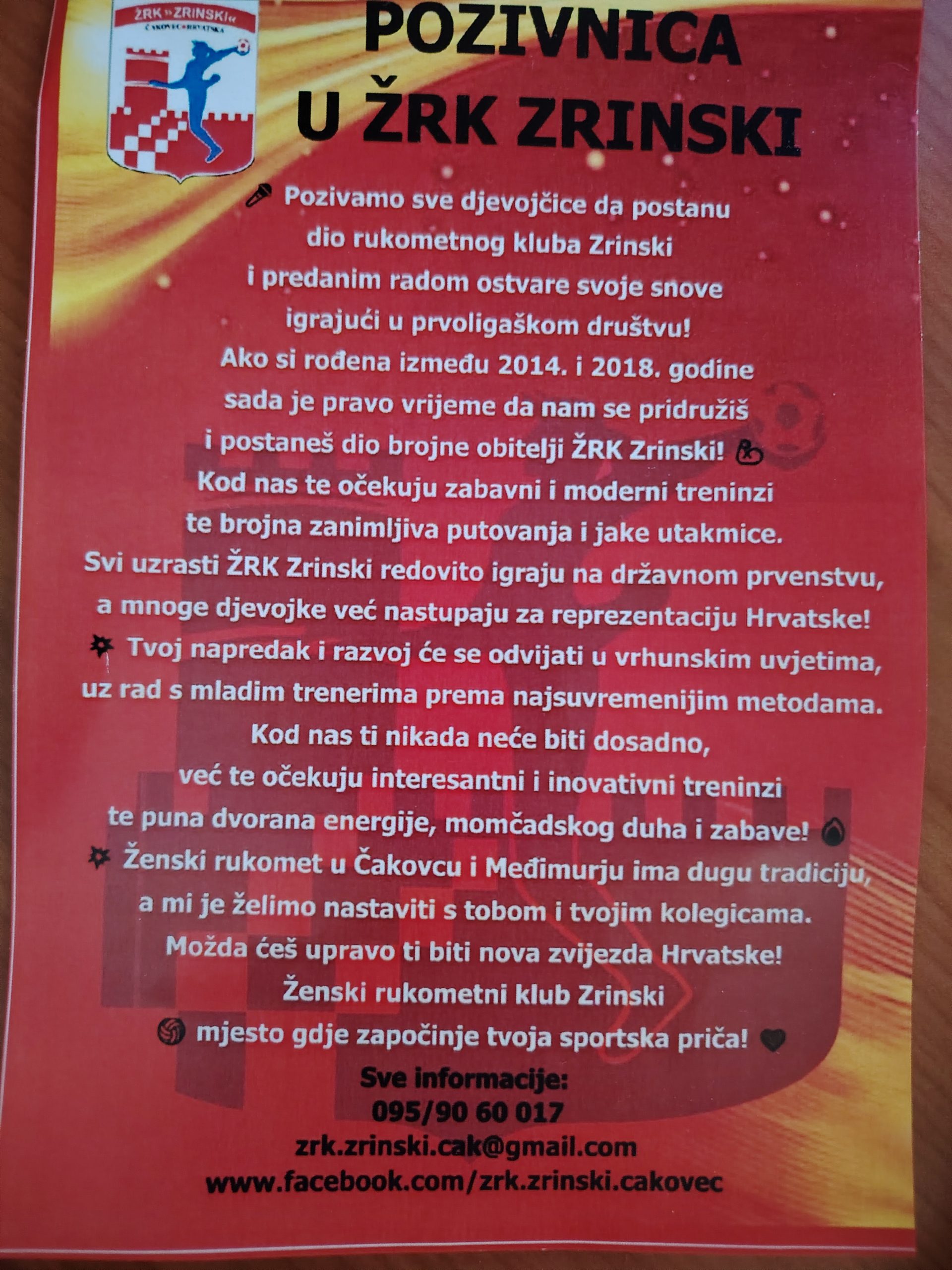 ŽRK Zrinski tijekom prvenstvene stanke poziva djevojčice da se uključe u mlađim kategorijama kluba.