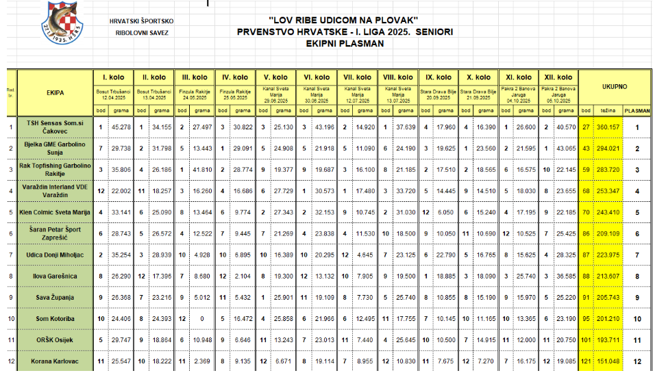 Nakon održanih 12 kola Prve Hrvatske lige u sportskom ribolovu ekipa ŠRK TSH Čakovec je po peti puta uzastopno postala prvak Hrvatske te poboljšala svoj rekord sa 4 na 5 uzastupnih titula.