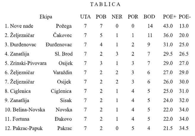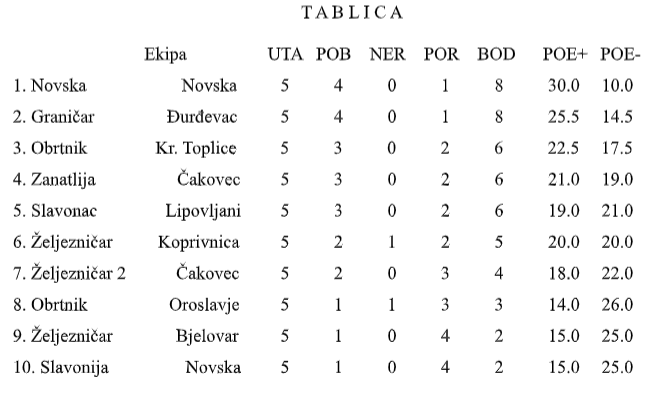 Jednako kao Zanatlija i kuglači Željezničara 2 bili su neuspješni domaćini Slavoncu iz Lipovljana. Gosti su bili bolji 6:2, za 48 čunjeva.