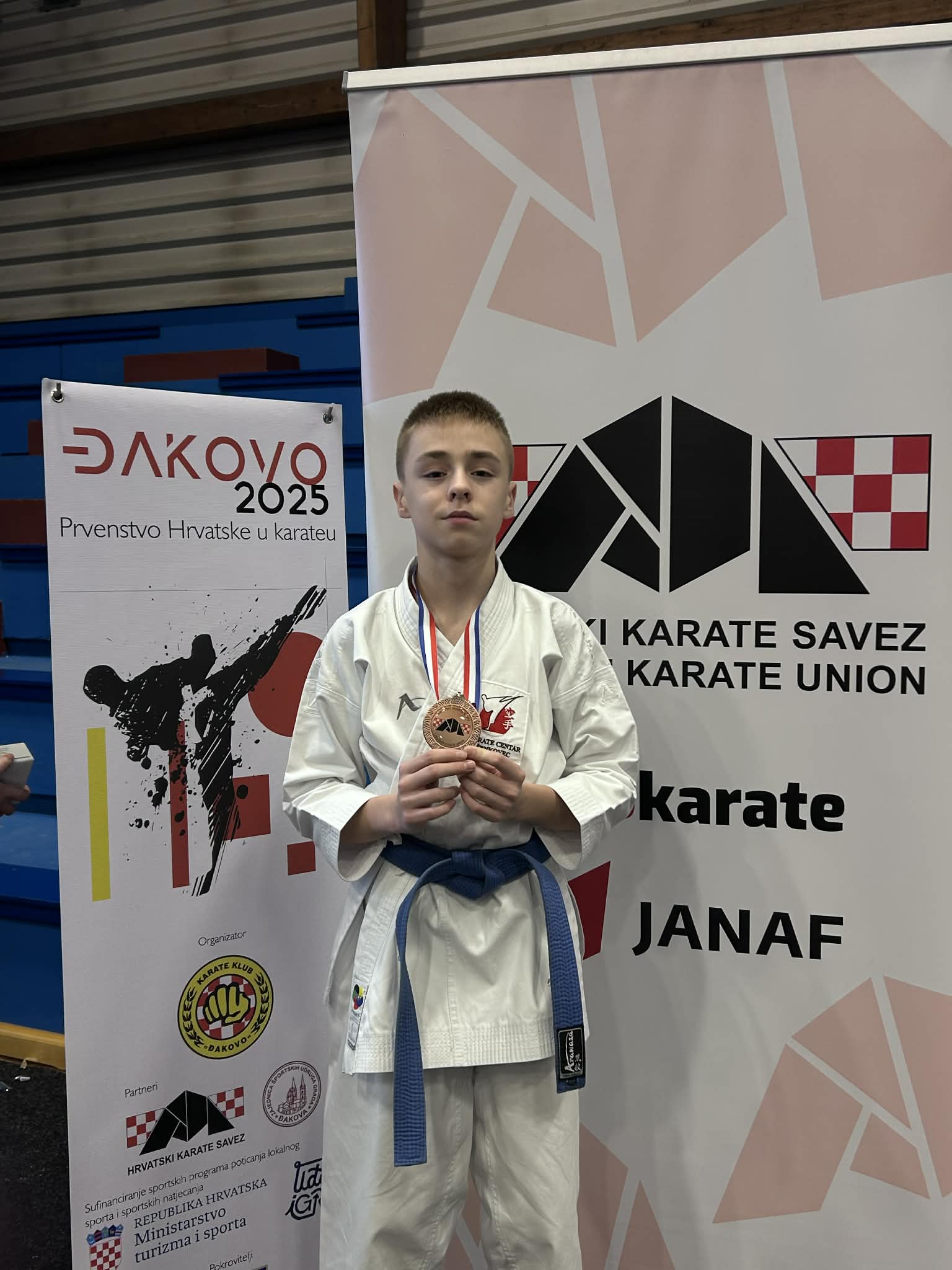 Mladi karataš Mauro Gajnik iz Karate centra Šenkovec u Đakovu osvaja brončanu medalju na prvenstvu Hrvatske u kategoriji U14