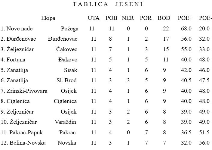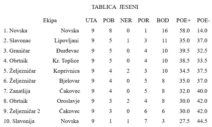 Sada slijedi ligaška pauza do 10. siječnja slijedeće godine, ali zato se za vikend održava pojedinačno prvenstvo Međimurja.