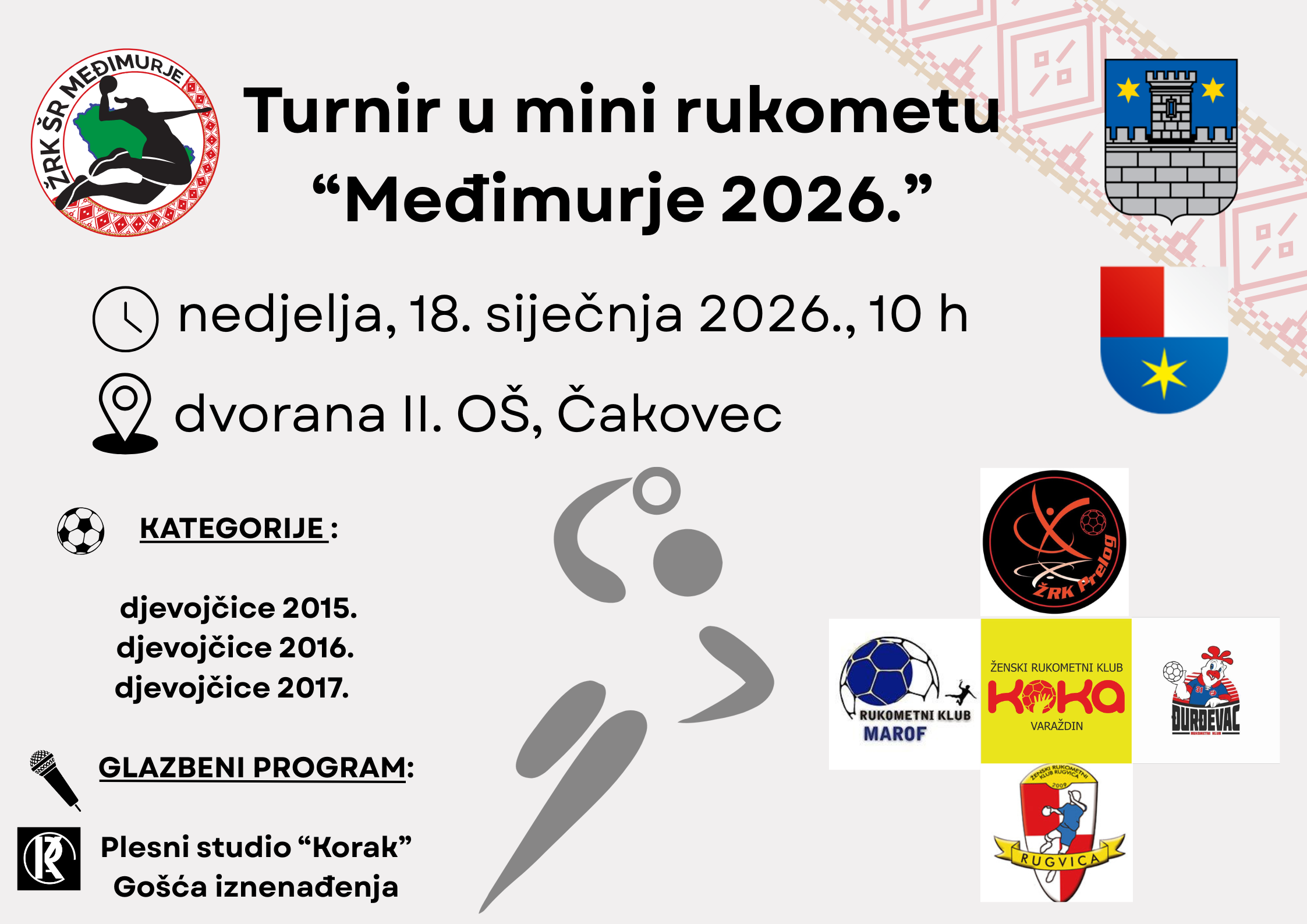 Turnir „Međimurje 2026.“ za klub ima posebno značenje jer će se u vlastitom gradu moći predstaviti ljepota rukometa, sporta, zajedništva i pozitivne atmosfere koja prati rad kluba. Podršku okoline potvrđuje i sudjelovanje članova Plesnog studija Korak pod vodstvom Virne Hošnjak, kao i Josipe Murković, polaznice Centra za odgoj i obrazovanje Čakovec, koja će izvesti klupsku himnu „Nega sonca nit meseca“.