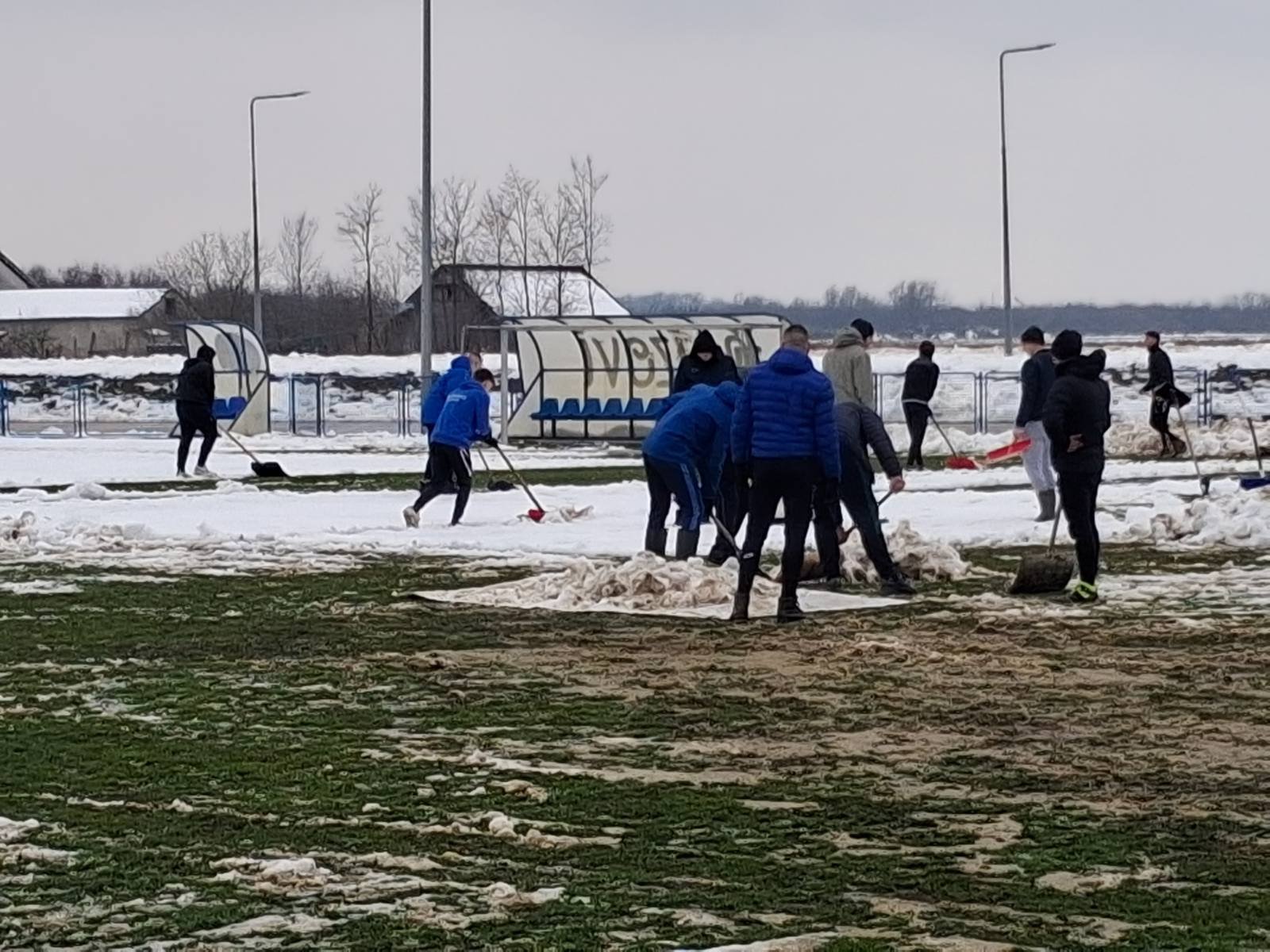Danas (subota) igrači i stručni stožer te članovi uprave imali su akciju čišćenja pomoćnog terena koji je bio prekriven snijegom, kako bi se osposobio za treniranje.