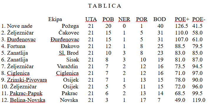 Međimurski drugoligaši su u neobičnoj situaciji. Naime u posljednjem kolu mogu čak i oba ispasti, ali isto tako jedan od njih biti i peti. U pretposljednjem kolu oba su izgubila, i to kao domaćini, i dovela se u takvu situaciju. Prvo je Željezničar 2 poražen od Graničara iz Đurđevca 3:5, a onda je Zanatlija izgubio od prvaka Novske 1,5:6,5.