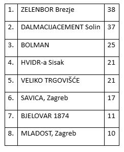 U posljednje kolo, koje je danas održano u Osijeku, Zelenbor je ušao s dva boda prednosti. Za osvajanje naslova potrebno je bilo osvojiti drugo mjesto, što je djevojkama i uspjelo. Ela Halabarec (624,8 krugova) i Sara Novak (616,1) odradile su sjajan meč i postigle svoje osobne rekorde, dok Anamarija Turk (616,9) danas nije imala svoj dan. Unatoč tome, postigle su 1857,8 krugova, dva više od trećeplasiranog Bolmana i slavlje je moglo početi. Osim naslova prvaka Hrvatske djevojke su osvojile i novu zračnu pušku, vrijednu 5000 eura. Muška ekipa Zelenbora osvojila je 6. mjesto.