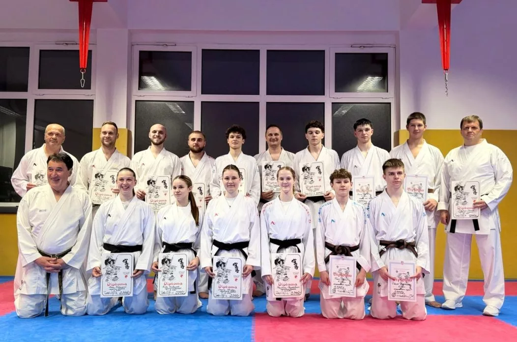 Smeđe-crni pojas (1. KYU) stekli su David Bermanec, Tino Panić i Ervin Šoltić, a smeđi pojas (2. KYU) stekao je Petar Filipović.