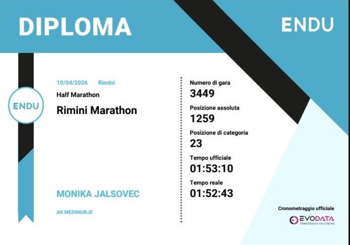 Članica Atletskog kluba Međimurje Čakovec nastupila je na polumaratonu u talijanskom Riminiju, gdje je pokazala svoju izdržljivost i kvalitetu.